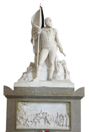 Tirol im Jahe 1809 (Basistext) Der französische Feldherr und Kaiser Napoleon versuchte ganz Europa zu erobern. Als er auch Österreich besiegen konnte, kam Tirol für neun Jahre zu Bayern, das mit Frankreich verbündet war. Der bayerische König versprach den Tirolern schriftlich, ihre alten Rechte und Freiheiten nicht anzutasten. Allerdings hielt er sich nicht daran: Einführung neuer Steuern Große Änderungen in Wirtschaft und im Handel Religiöse Reformen: Verbot der Mitternachtsmette zu Weihnachten, Abschaffung von Feiertagen und Prozessionen sowie des Glockengeläuts nach Feierabend - dies traf die Tiroler besonders tief Einführung der allgemeinen Wehrpflicht zum bayerischen Heer - schon 300 Jahre vorher hatte Kaiser Maximilian I. den Tirolern versprochen, dass sie nur ihr eigenes Land verteidigen müssten Langsam steigerte sich der Widerstandswillen der Tiroler. Als Österreich im Jahre 1809 den Franzosen und ihren Verbündeten den Krieg erklärte, schlugen auch die Tiroler los. Die Hauptkämpfe fanden am Bergisel unter der Führung des Südtiroler Gastwirts und Pferdehändlers Andreas Hofer statt. Seine bedeutendsten Mitkämpfer waren Peter Mayr, Josef Speckbacher und Pater Joachim Haspinger. Unter Bergisel verstand man damals die Hänge südlich von Innsbruck und nicht nur die Erhebung mit der heutigen Sprungschanze. Glockengeläute und Bergfeuer überall im Land riefen die Bauern zu den Aufständen. Erste Bergiselschlacht (25. Mai 1809) Am frühen Morgen besetzten die Tiroler Bauern den Bergisel und wehrten sich gegen die anrückenden bayerischen und französischen Soldaten. Nach nur wenigen Stunden wurden die Kämpfe durch die einbrechende Nacht und einem heftigen Gewitter beendet. Entscheidung gab es keine. Zweite Bergiselschlacht (29. Mai 1809) Die Tiroler waren siegreich und der französische General beschloss im Schutz der Nacht abzuziehen. Dritte Bergiselschlacht (13. August 1809) Schon am frühen Morgen standen rund 15.000 Tiroler den rund 15.000 Bayern, Franzosen und Sachsen gegenüber. In einem zähen Ringen, das bis in die Nacht dauerte, konnten die Tiroler den Feind bezwingen. Vierte Bergiselschlacht (1. November 1809) Andreas Hofer wollte keinen Kampf mehr und mit den Bayern Frieden schließen, doch Pater Haspinger konnte ihn zu einer vierten Schlacht überreden. Der österreichische Kaiser ließ die Tiroler im Stich. Nach rund zwei Stunden mussten sich die Tiroler geschlagen geben. Andreas Hofer floh auf die Pfandleralm, wurde von Raffl verraten und von den Franzosen gefangengenommen. Sie brachten ihn nach Mantua, wo er am 20. Februar 1810 erschossen wurde. Erst einige Jahre später erfolgte die Übertragung der sterblichen Überreste Hofers nach Innsbruck, wo er in der Hofkirche bestattet liegt.