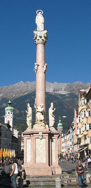 Der „Boarische Rummel“ 1703 (Basistext) Die Vorgeschichte Kaiser Maximilian I. (um 1500) war in erster Ehe mit Maria von Burgund verheiratet. Ihr Sohn Philipp der Schöne heiratete die spanische Prinzessin Johanna die Wahnsinnige, wodurch Spanien an die Familie Habsburg kam. Es bestanden somit zwei Linien der Habsburger, die spanische und die österreichische Linie. Im Jahre 1700 starb die spanische Linie aus, was zum Krieg um die spanischen Besitzungen führte. In diesem Spanischen Erbfolgekrieg kämpften die österreichischen Habsburger gegen die Franzosen und verloren. Auf der Seite Frankreichs kämpften die Bayern und besetzten im Jahre 1703 Tirol. Tirol und Bayern 1703 Der mit Frankreich verbündete bayerische Kurfürst Max Emanuel stellte Ansprüche auf Tirol. Schon mehrmals in der Tiroler Geschichte hatte es bewaffnete Konflikte mit Bayern gegeben. Er marschierte mit 12.500 Soldaten von Rosenheim gegen Kufstein und eroberte die Stadt und die Festung. In Innsbruck wurde er jubelnd empfangen. Doch bald brachen an verschiedenen Stellen des Landes Aufstände der Bevölkerung aus. In der engen Innschlucht zwischen Landeck und Prutz erlitten die Bayern und Franzosen eine Niederlage, der Kurfürst musste umkehren und verließ Tirol. Am Abend des 26. Juli 1703 (Annatag) war Tirol wieder frei. Als Dank an die Befreiung errichteten die Tiroler in der Maria-Theresien-Straße in Innsbruck die Annasäule. Allerdings verloren die Habsburger ihre spanischen Besitzungen an die Franzosen.